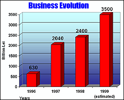 The preliminary financial results of the year 1999 are higher to those of 1998 despite the difficult situation of the Romanian economy, demonstrating a large adaptability and flexibility of the management. |