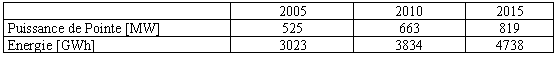 Les prévisions de la demande et de la puissance de pointe de la ville de Kinshasa établies par SNEL dans le cadre de l'étude du Plan directeur à l'horizon 2015 donnent l'évolution suivante: