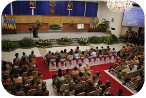 There are 1,629 academic staffs, 1,120 non academic staffs, and 22,492 students. We put emphasis on developing international collaborations with overseas universities and institutions, and keep looking for opportunities to enhance our current academic agreements. Our current research interest is on tropical diseases and herbal medicine as part of a strategy in the development of life science. This is due to the situation where some diseases, such as avian influenza, are still endemic in Indonesia and the world. Research on natural products and enzymes are conducted intensively in order to empower various sectors of the society for the enhancement of the quality of agriculture, health, animal husbandry and others. We also take part in developing social science through research and studies in the fields of social, politics and culture. These are our contribution to the nation and the world.