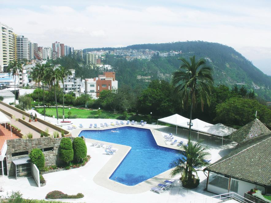 Swimming pool of a well known hotel in Quito with views to Guapulo