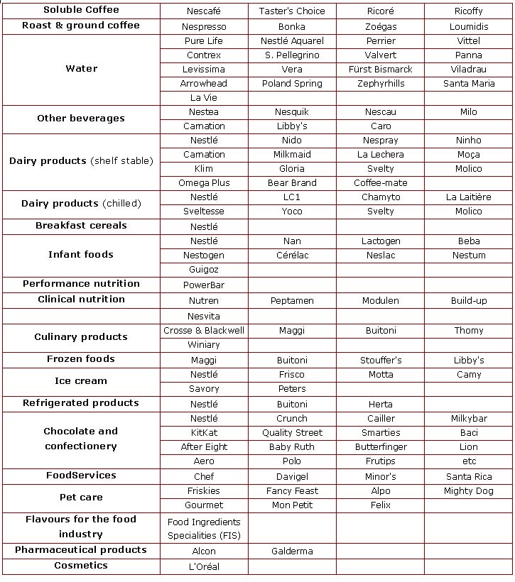 Nestlé products, sourced from all over the