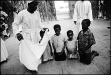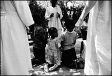 branches and leaves. Inside, among a curious crowd, were a pastor,