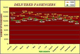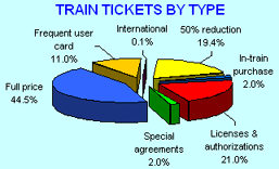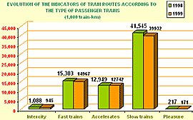 The main indicator that measures the company's activity is the passenger-km. This indicator helps to dimension both the number of trains and the economic activity. In 1999 this indicator met a relatively stable evolution: between 94 and 99%.