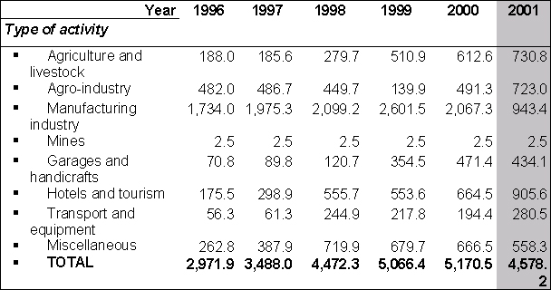 - Crafts : mechanised carpentry, garages, confectionneries