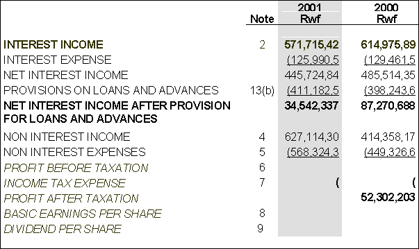 within the country, especially the Bank of Rwanda