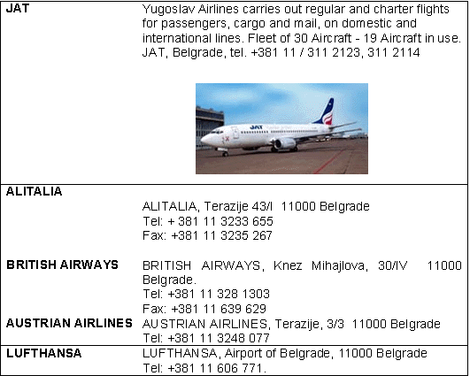 The following airports are open to international traffic: Belgrade airport, tel. +381 11 / 605 555, 603 262 Nis airport, tel. +381 18 / 48 887, 40 766, 48 186 Pristina airport, tel. +381 38 / 28 442